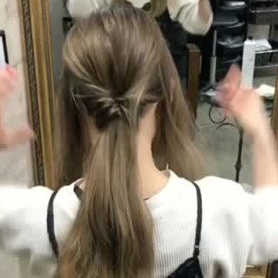 左右とも耳横の髪を残して、それ以外の髪をくるりんぱします。ポイントは、下の方で結ぶこと◎くるりんぱができたら、バランスをみながらほぐしましょう。