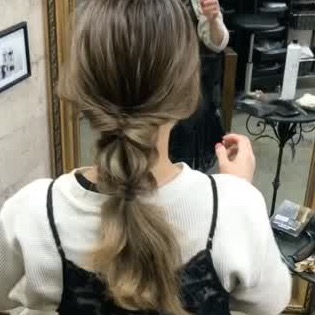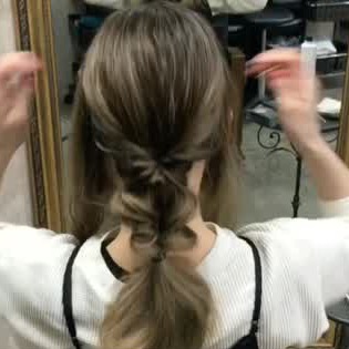 手順3の毛束の毛先3分の1を結び、さらにくるりんぱして毛を引き出しましょう。全体にボリュームがありますよね♡