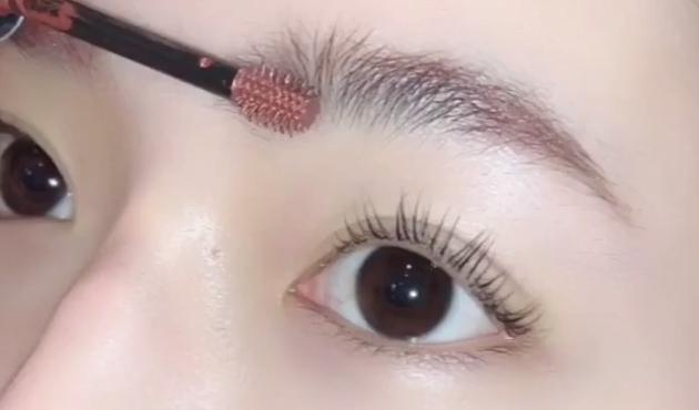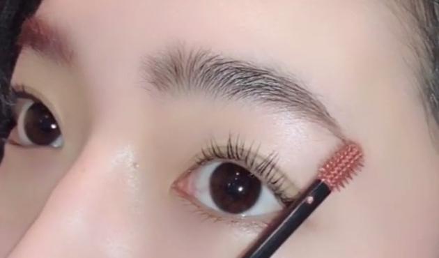 反対に眉頭から上向きに眉マスカラを動かしていきます。毛並みを整えるイメージで毛流れに沿ってつけていきましょう。簡単にふわっと色づくきれいな眉毛に仕上がりましたね♪