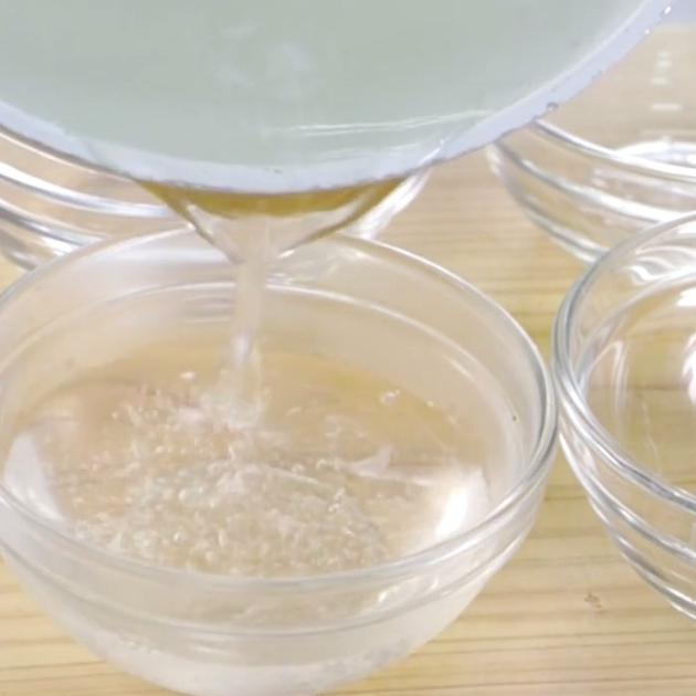 次にガラスボウルに移し替え、冷蔵庫で冷やします。これでアガーゼリーができました!