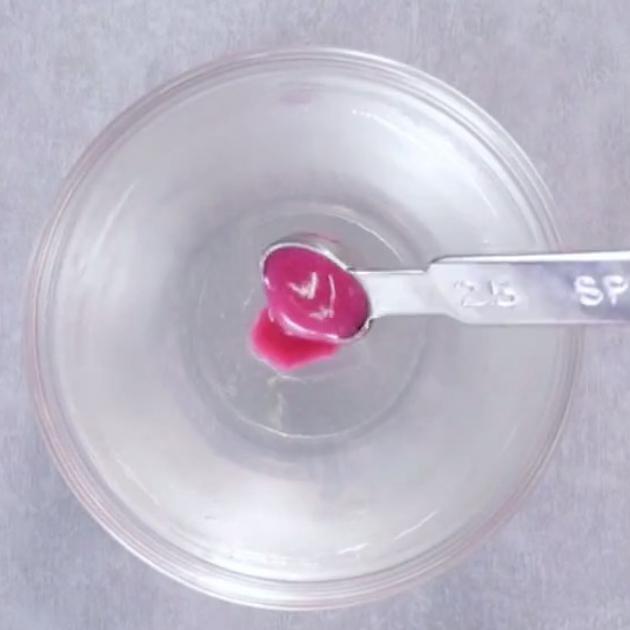 手順1で作ったアガーゼリーの真ん中をスプーンでくりぬき、そこに手順3で作った液を流し込みます。色はあなたのお好みで♡