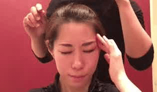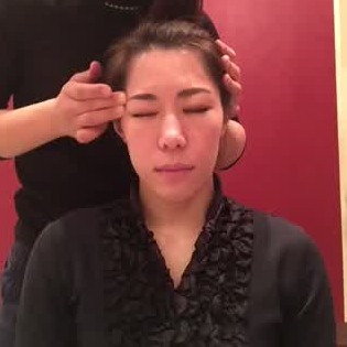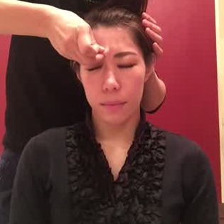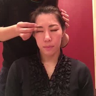 親指と中指で眉頭をつかみ、上下にふるふると揺らします。眼球には刺激を与えないように、目をつぶって程よい力をかけていきましょう。
