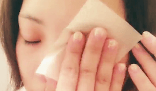 まず、あぶらとり紙を使ってまぶたの油分を落としましょう。絆創膏をキレイに貼るための下準備です。
