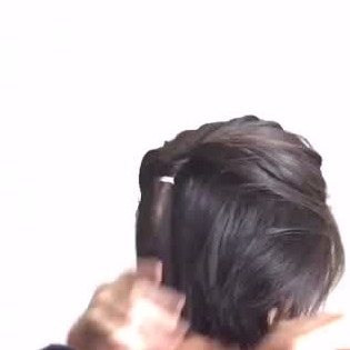 捻った髪の毛の束は、くるりんぱしたあたりまでもっていきます。