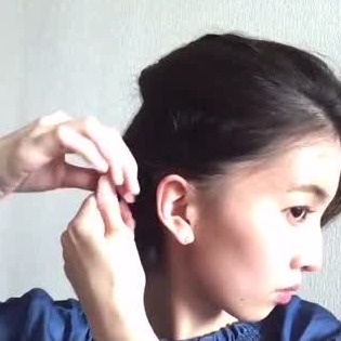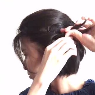 先ほど髪の毛を全部結べなかった方は、顔の横の髪の毛をねじります。