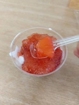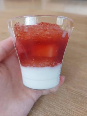蓋を開けると、まずはいちごのクラッシュゼリーが!