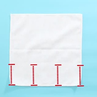 1辺の中間からハンカチの中心に向かって、まっすぐに切り込みを入れます。