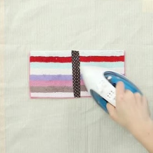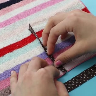 切り込みと同じ長さに切ったバイアステープを2本用意し、切り口を覆うようにして貼ります。