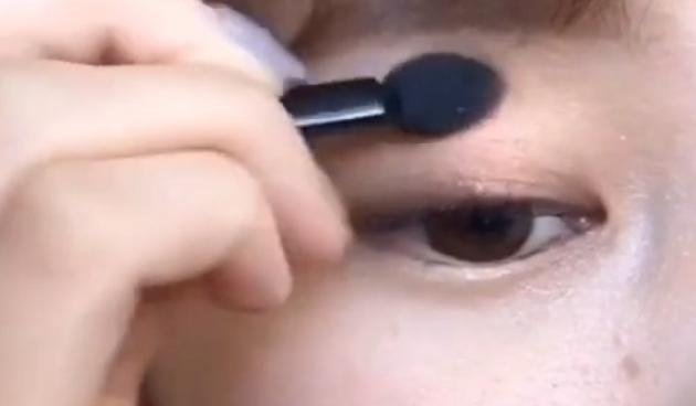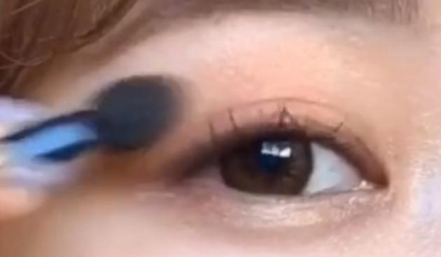 手順1・2で使ったアイシャドウの薄いブラウンをとり、目尻部分にのせていきます。