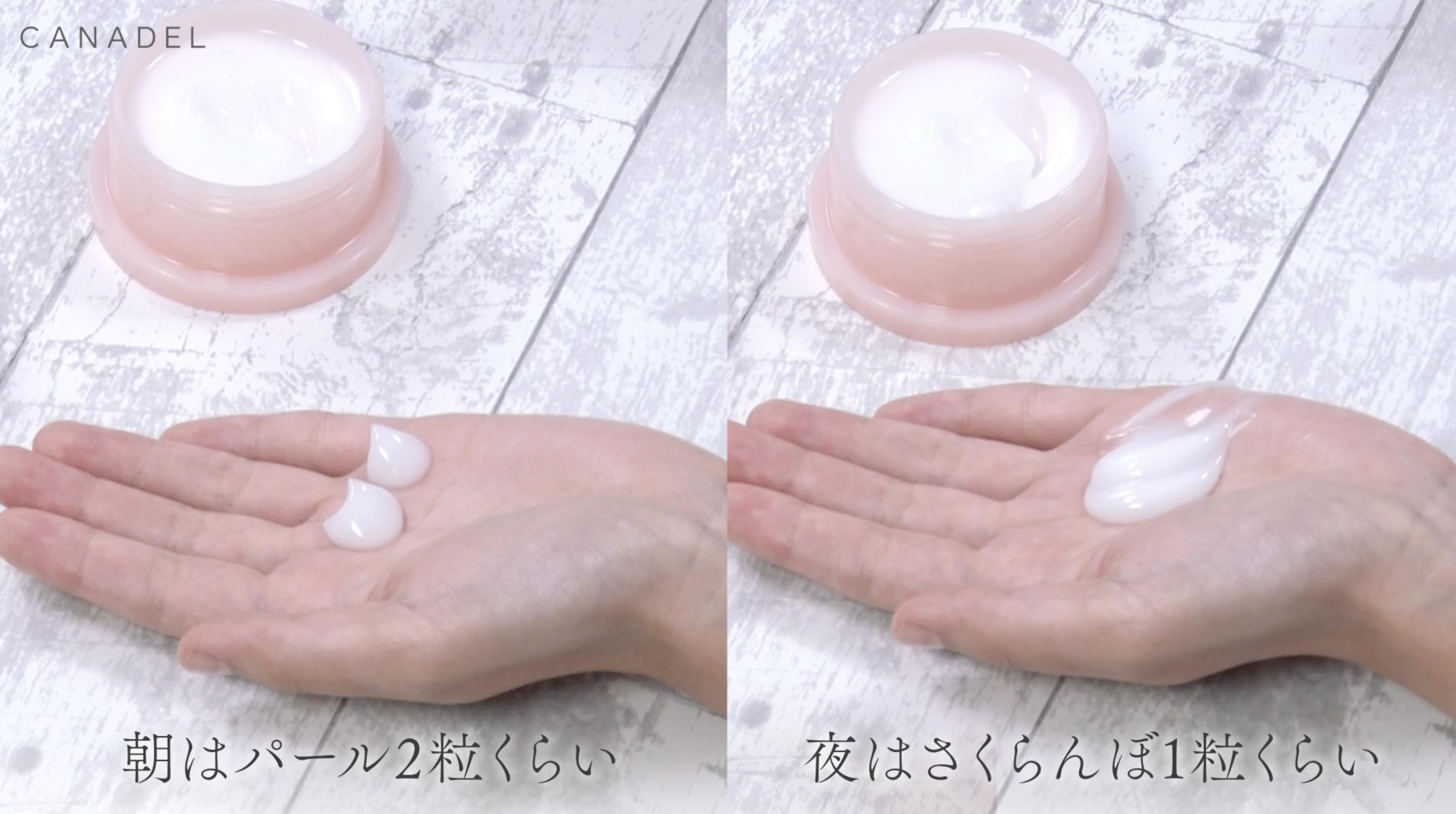 朝はスパチュラで軽く2杯分。夜はちょっと多めに取って、さくらんぼ1粒くらいでケアしましょう。さくらんぼ1粒半ほどの量なら、マスク代わりとしても使えます◎