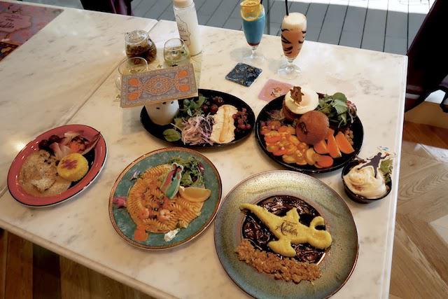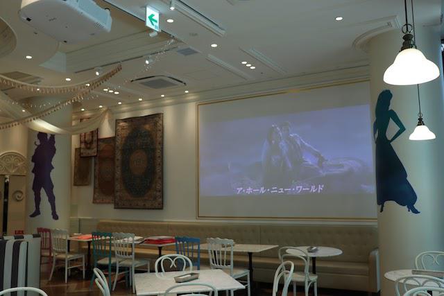店内奥には『アラジン』の映像が流れ、天井には魔法のランプや絨毯も! そして気になるメニューは......?