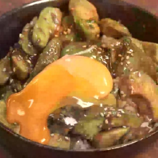 4.卵部分だけ混ぜてさらに40秒加熱し、半熟になれば完成