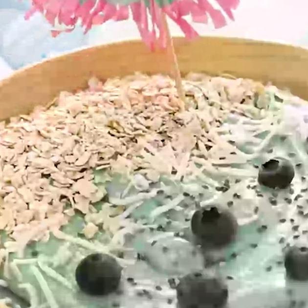 バナナやアボカドをミキサーでスムージに♪天然色素スピルリナを入れてマーメイド風にすればインスタ映えな朝ごはんに。