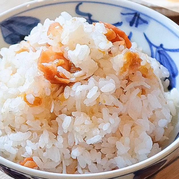 種をとった梅としらすをお米と混ぜて、塩を少しふりかければ完成!