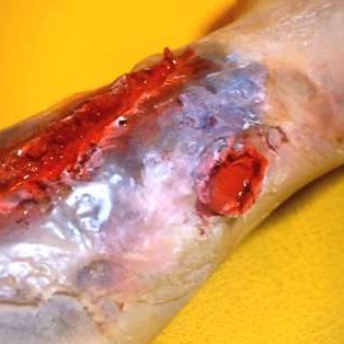 6. 赤の絵の具などで傷口を再現する