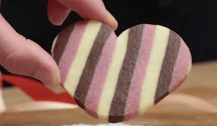 プレーン・ココア・ラズベリーの3つの味を閉じ込めた”ストライプクッキー”。カラフルな見た目もかわいいですよね!