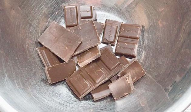 1枚(60g)の板チョコを湯煎します。原型がなくなって、ドロドロするまで溶かしましょう。