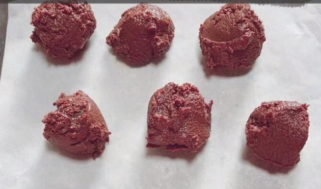 生地を一口大に丸め、冷蔵庫で30分ほど冷やして固めましょう!くっつかないように下にクッキングシートを敷くとGood。