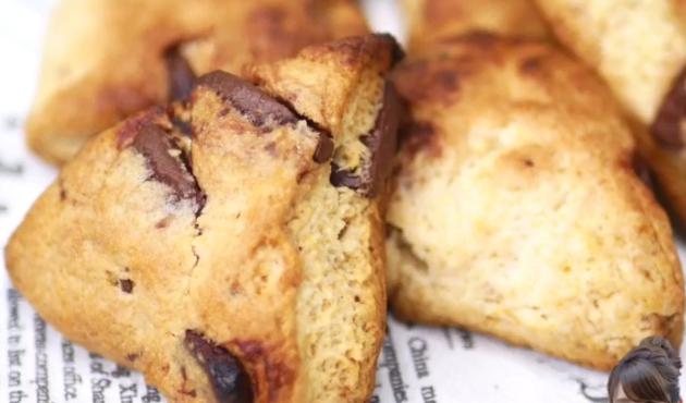まずご紹介するのは、ざくざくとチョコレートが散りばめられた「スコーン」のレシピです。ホットケーキミックスを使うことで、より簡単・時短に。材料をポリ袋に入れて混ぜるので、手も汚れません◎