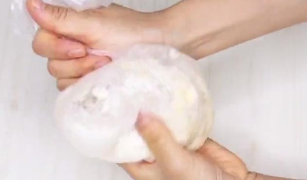 手順1で作った生地に牛乳を混ぜ合わせます。牛乳が生地にしっかりなじむまでもみましょう。