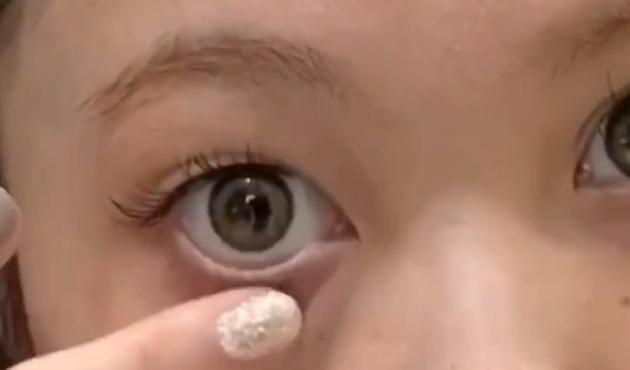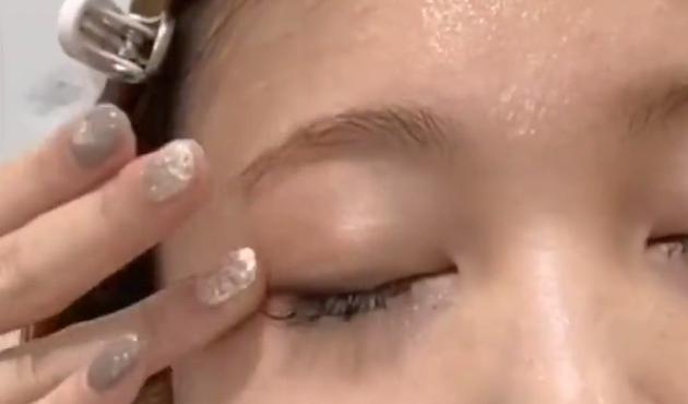 目のキワのアイラインは綿棒を使うのが◎。綿棒に少量のクレンジングをつけて、エクステにつかないよう上に向かってなじませていきます。