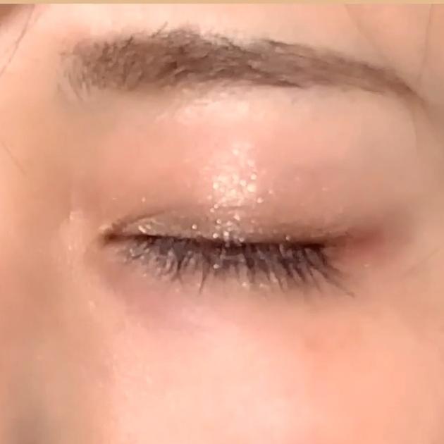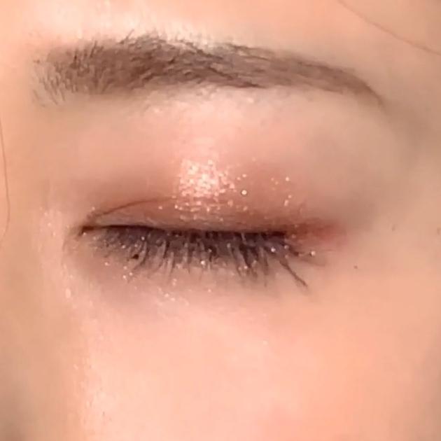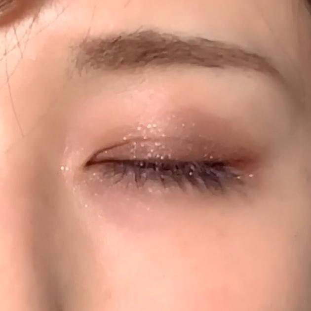 「01 シュガーブラウン」を使用。ガーリーな優しい印象に仕上げてくれます◎肌に馴染むブラウンラメなので、ギラギラしすぎないのがポイントです!