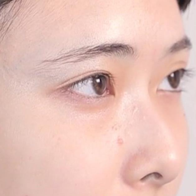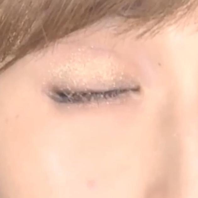 「01 シャンデリアベージュ」を使用。浮くことなく、自然な涙袋に◎ピンク系パールカラーがふんわりとした立体感を演出します。