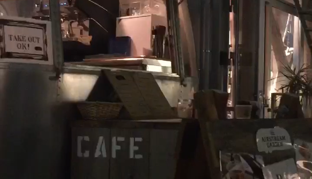 お店はアルミ材で出来たボディーが特徴的なキャンピング・トレーラー!キャンピング・トレーラーがカフェになっているなんて、まるでドラマのセットみたい♪ムード抜群なおしゃれ空間に、友だちも満足すること間違いなし♡