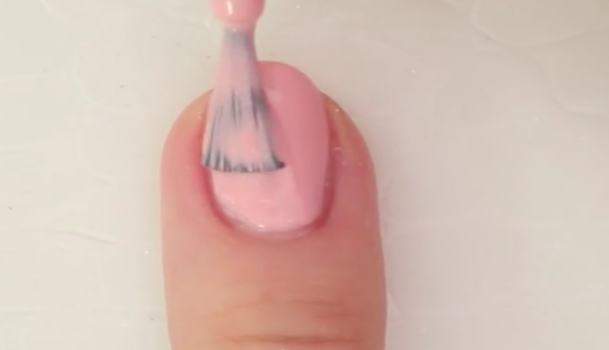 ベースとして、ダスティーピンクを爪全体に塗ります。ムラにならないよう丁寧に塗っていってください。