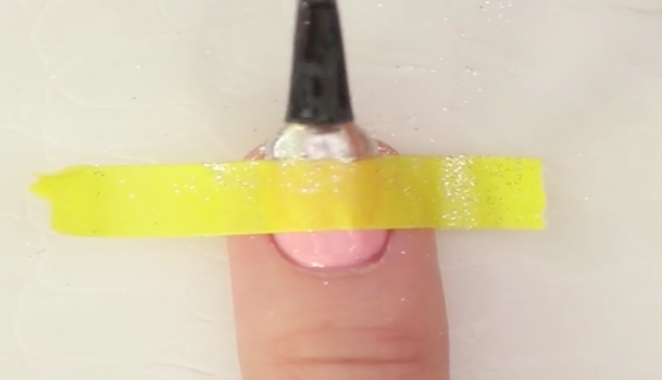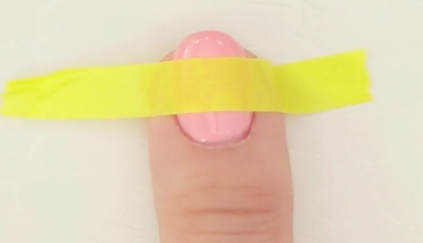 爪の中心に、細長く切ったマスキングテープをはりつけます。あとではがしやすいよう、長めに切っておくのがグッド。