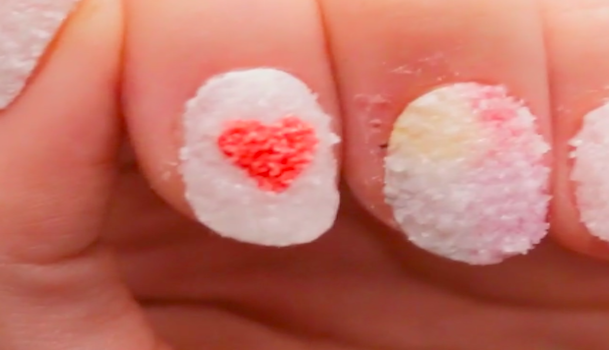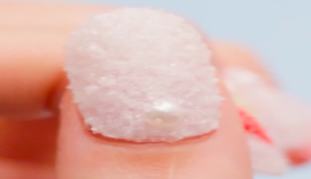 3つめは立体感のある、可愛らしいシュガーネイル。こちらも100均のパウダーをふりかけるだけでできるので、とってもラクチン。お砂糖がたくさんかかった指先だなんて、甘いモノが大好きな女の子の憧れですね♡
