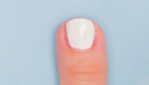 ベースとしてホワイトのポリッシュを爪全体に塗ります。ムラにならないよう注意しながら塗ってください。
