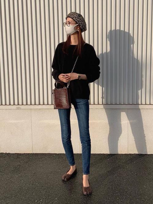 ガーリーなコーデに仕上げたいときはバレエシューズがおすすめ。ぺたんこのものが多いので、その場合はハイウエストのスキニーパンツと合わせると、脚が短く見えるのを防げますよ!