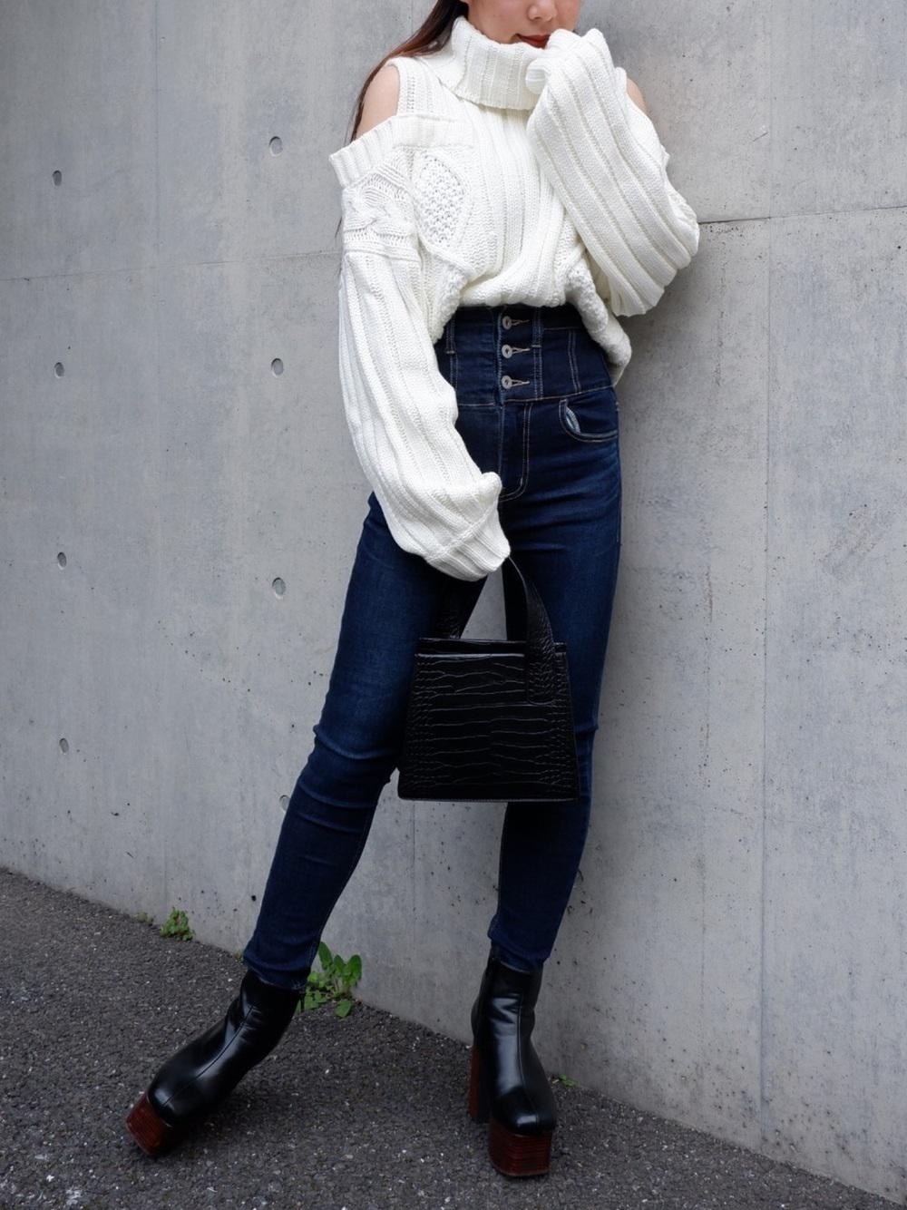 足の長さが気になるという方は、ハイウエストのスキニーパンツを選びましょう♪腰の位置をグッと高く見せることができます。またヒールのある靴を合わせることでさらに脚長効果が狙えます♡