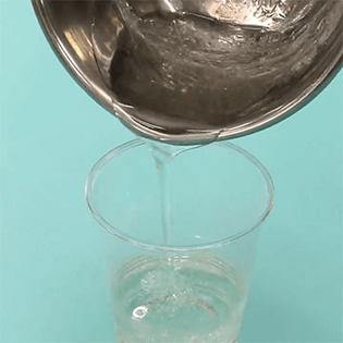 クリアのソープが湯煎できたら、耐熱の容器に移し替えます。ソープは湯煎したことによりとても熱くなっているので、くれぐれも火傷にはご注意くださいね。