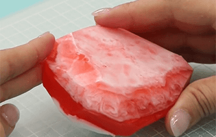 こちらのカラーは白色のソープ10gと、クリアーのソープ75gに食紅を混ぜたものをミックスさせて作ることができますよ♡
