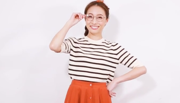 最後は丸メガネを使ったコーディネート。ボーダーのトップスに赤のロングスカートでレトロ感を演出。そこに丸メガネをつけることでより一層おしゃれ度も増し、ファッショニスタに!スカーフを頭に巻くとさらにGOOD◎