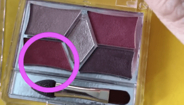 CANMAKEのアンティークルビーの左下の濃い赤をチップにとり、二重ラインにチョンっとのせます。チップでしっかりぼかしたらナチュラルオルチャンアイメイクの完成です♪