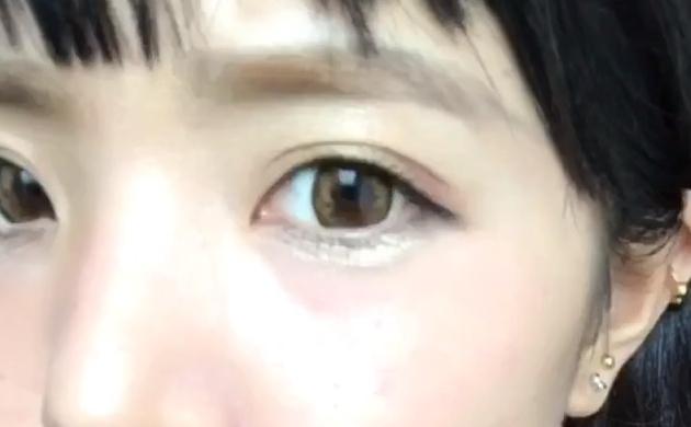 目の際に細くラインを引き、そのままタレ目気味に目尻まで伸ばします。このとき、かなりタレ目気味に目頭より下げるイメージで描くとgood!