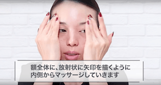 おでこ全体に、内側から外側に向かって矢印を描くようにマッサージをします。指の腹を使って、優しくなぞるようにマッサージしましょう。
