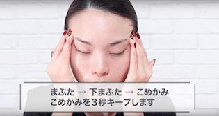上まぶた、下まぶたの順番に内側から指で流したら、こめかみで3秒キープします。指で優しくこめかみを押しながら、リンパを流していきましょう◎
