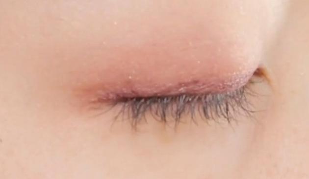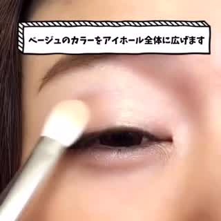 まずはパレット右上のあわいベージュカラーをアイホール全体に広げます。アイシャドウブラシを使用しましょう。
