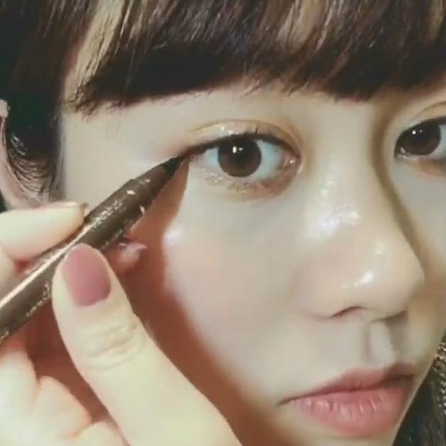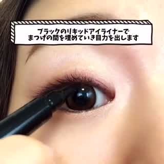 ブラックのリキッドアイライナーでまつげのすきまを埋めます。アイラインを引くわけではないので、注意!ちょんちょんと点を重ねて、ちょっとしたデカ目効果を狙いましょう♡