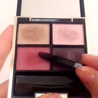 いよいよアイシャドウを塗っていきます。今回使用するのは、ヴィセ「グロッシーリッチアイズ PK-3」。あざやかなボルドーを含む4色が入ったパレットです。すべて使いやすいカラーなので、捨て色なくいろんなメイクに使えます。濡れたように優しく光る細かいラメも上品♪