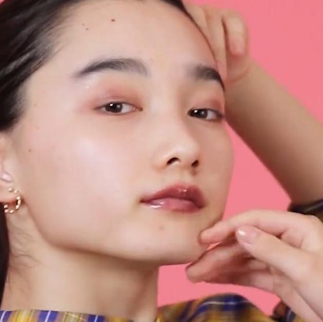 リップをピンク寄りのボルドーにしたら、上から薄ピンクのグロスを重ねてツヤ感を出しましょう。チークはあわいオレンジか、ピンクをチョイスするのが正解。