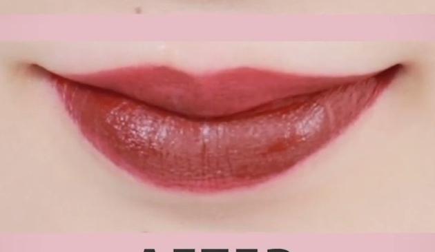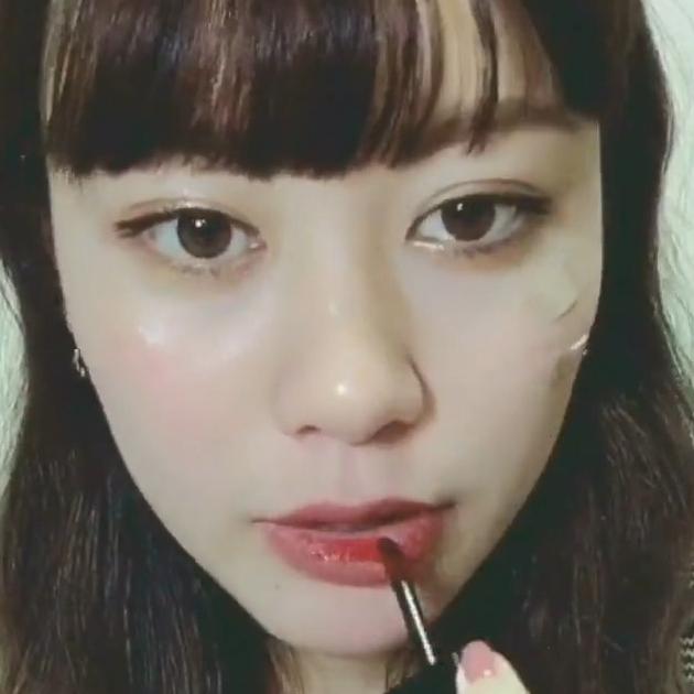 仕上げに、唇の内側だけ濃いめの赤ティントをのせましょう。じゅわっとした血色感がでます♪