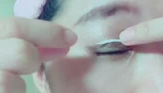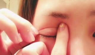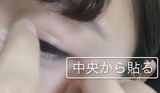 切った絆創膏の台紙を取り、自分のなりたい二重幅の上に目頭側から貼っていきます。貼るときのコツは、びよーんと引っ張りながら貼っていくこと!