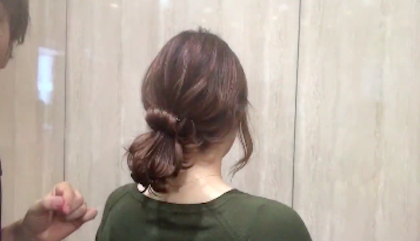 少しルーズ感を出すように崩したら完成です。ヘアアクセサリーをつけなくてもかわいいので、忙しい朝や、洋服に合うヘアアクセがない時にぜひ試してみて下さい♪
