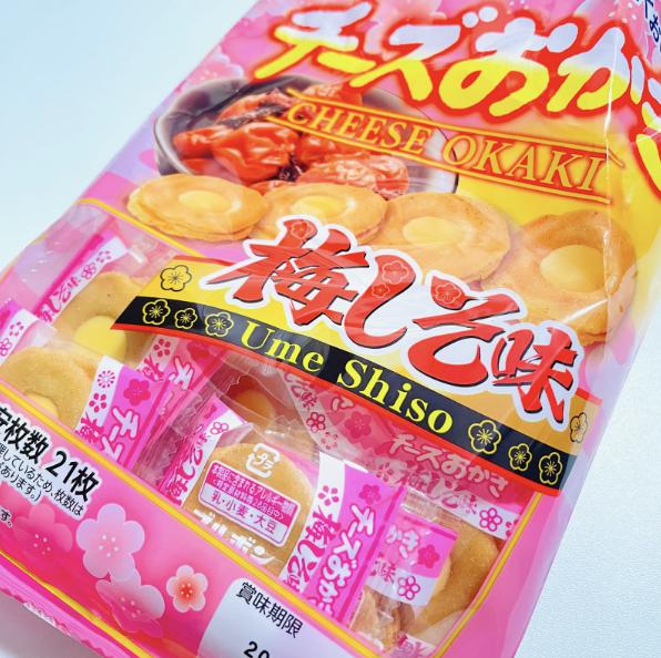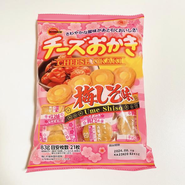 「チーズおかき梅しそ味」は梅のさわやかな酸味と濃厚なチーズクリームの絶妙なバランスが楽しめる非常に美味しいおかきでした!