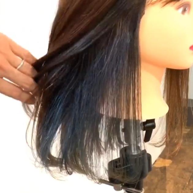 黒髪と相性抜群なのはブルー。インナーカラーを入れると明るい印象になりがちですが、ブルーは落ち着いた印象になります◎